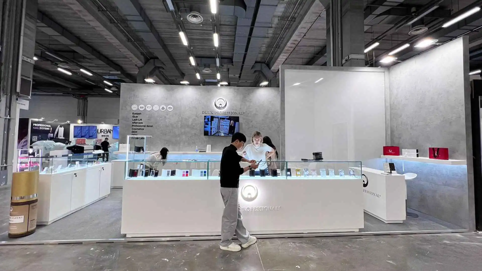 • Check booth equipment and visuals.